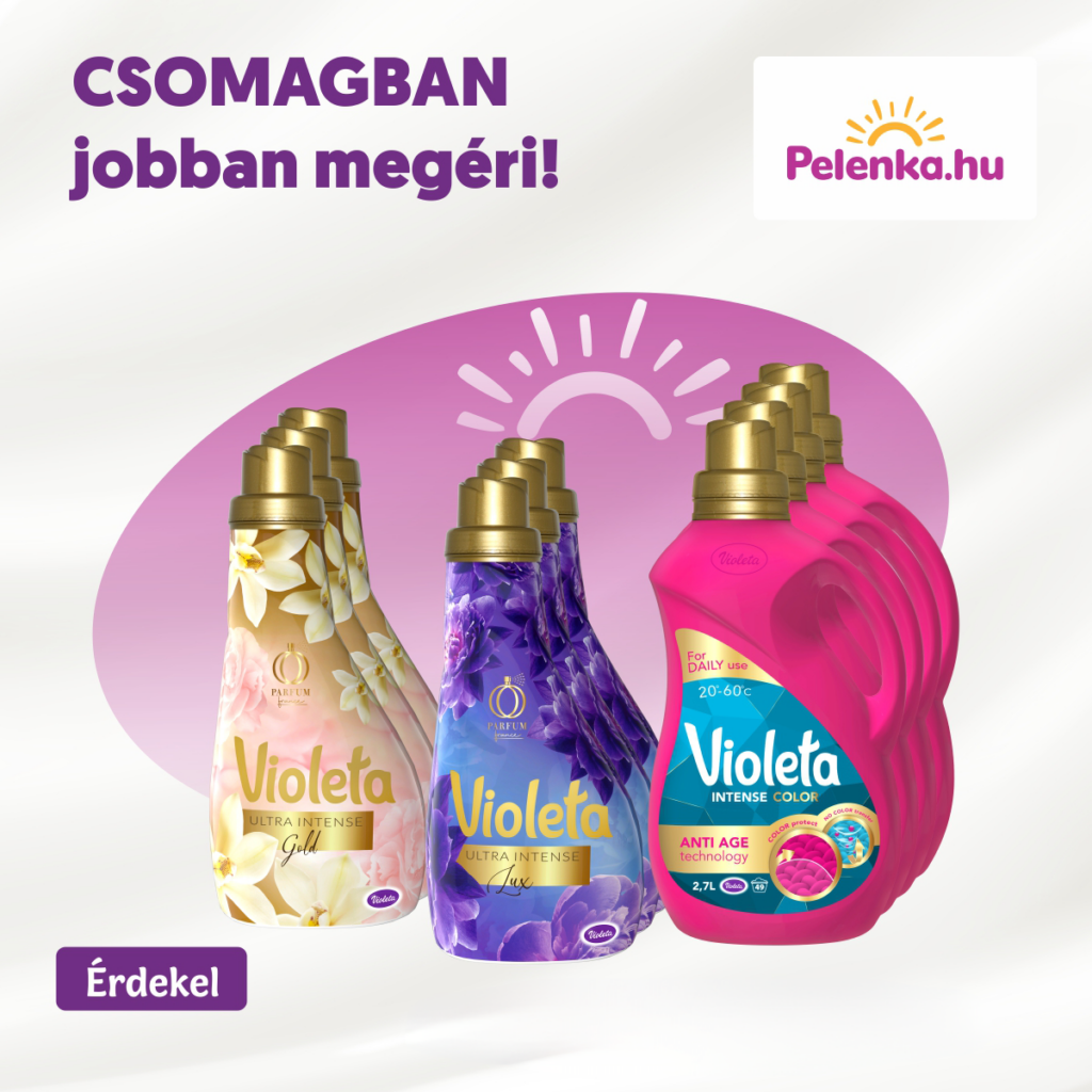 Fedezd fel a Violeta mosógélek és öblítők csomagajánlatait a Pelenka.hu-n, és varázsold újjá ruháidat a kedvenc illatokkal!