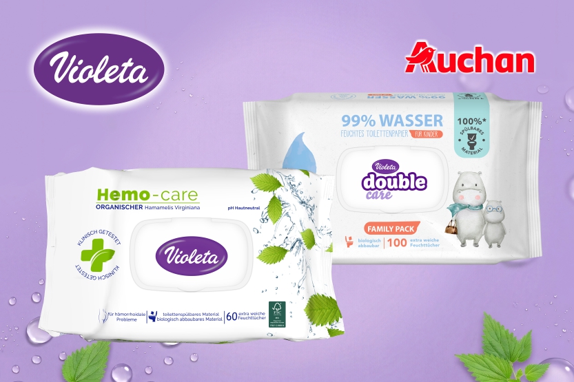 A VIOLETA nedves toalettpapírjai gyengéd ápolással és kiváló minőségű alapanyagokból készülnek. 📣 Most kedvezményesen vásárolhatod meg őket az Auchan üzleteiben és webshopjában! 💜 Akciós időszak: 2026.04.16. – 2026.04.22.