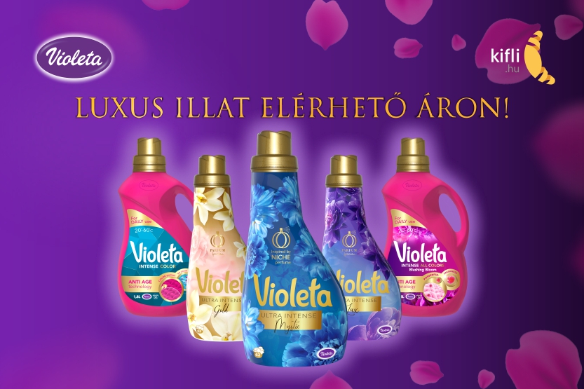 📣 VIOLETA újdonságok a Kifli.hu-nál! Keresd prémium minőségű Ultra Intense öblítőinket, 2,7 literes öblítőinket ésIntense mosógéljeinket most bevezető áron a kifli.hu kínálatában! 💜 Kedvezményes időszak: 2026.03.02-03.08.