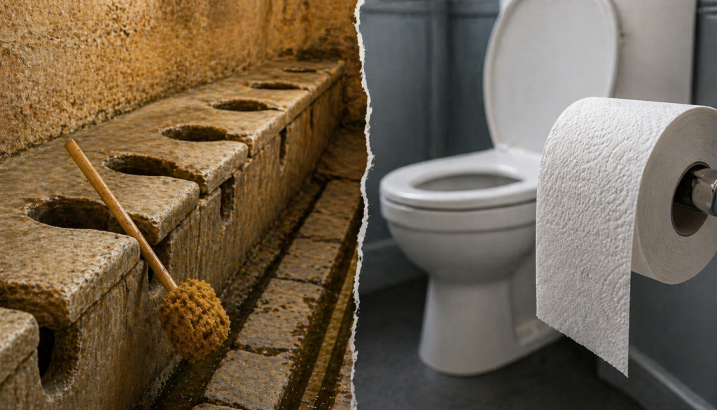 Az emberiség történetének nagy részében nem létezett olyan, hogy kifejezetten erre a célra gyártott papír. A megoldások mindig attól függtek, hogy ki hol élt, és mi állt rendelkezésére. Az ókori Rómában például egy úgynevezett Tersorium nevű eszközt használtak: egy pálcára erősített szivacsot, amelyet használat után sós vagy ecetes vízben tisztítottak meg. Ma már nehéz elképzelni, de akkoriban ez teljesen elfogadott és elterjedt megoldás volt.