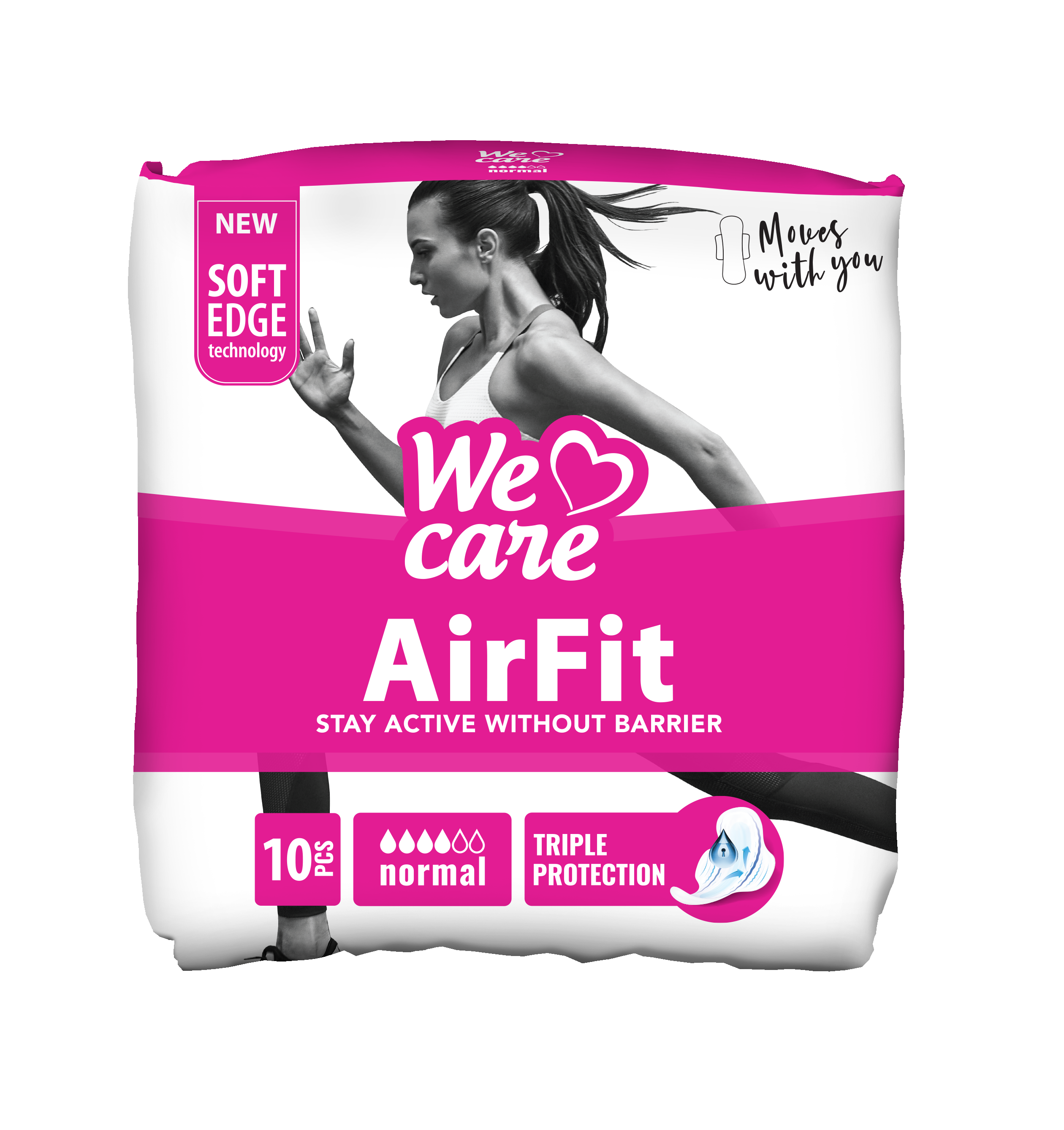 Violeta We Care AirFit 10 darabos normál egészségügyi betét, zajmentes csomagolásban. Miért válassza a Violeta We Care AirFit betéteket? 0% szivárgás = a felületet borító 500x nedvszívó párna gondoskodik róla, hogy a betét 40 ml-től egészen 135 ml-ig felszívjon minden folyadékot. 0% irritáció = színezékektől és további illatanyagoktól mentes, bőrgyógyászatilag tesztelt. 24 órás frissesség és kényelem érzése, Flexi Form = tökéletes alkalmazkodás minden testmozgáshoz – a séta, futás, torna egyszerűbb és biztonságosabb általa. Air Dry technológia = Az Air Fit betéteket Air Dry technológiával fejlesztették ki, ami azt jelenti, hogy a betét felületén csatornák találhatók, amik lehetővé teszik a folyadék gyors eloszlását és felszívódását, valamint a légáramlást, amely megakadályozza a bőr kipirosodását és irritációját.