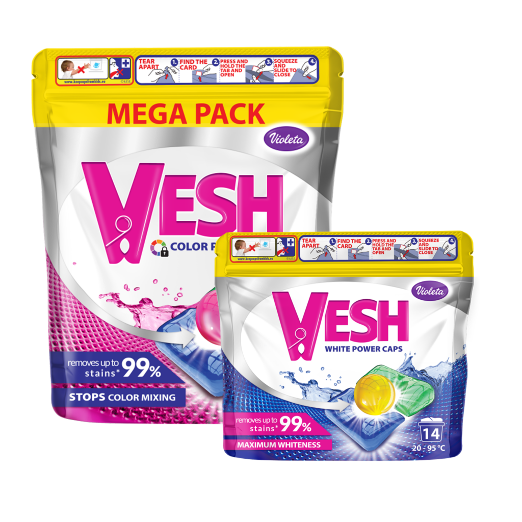A Violeta új mosógél márkája a legmakacsabb szennyeződésekkel is könnyedén megküzd! A Vesh segítségével örökre elfelejtheted a kényes foltokat!